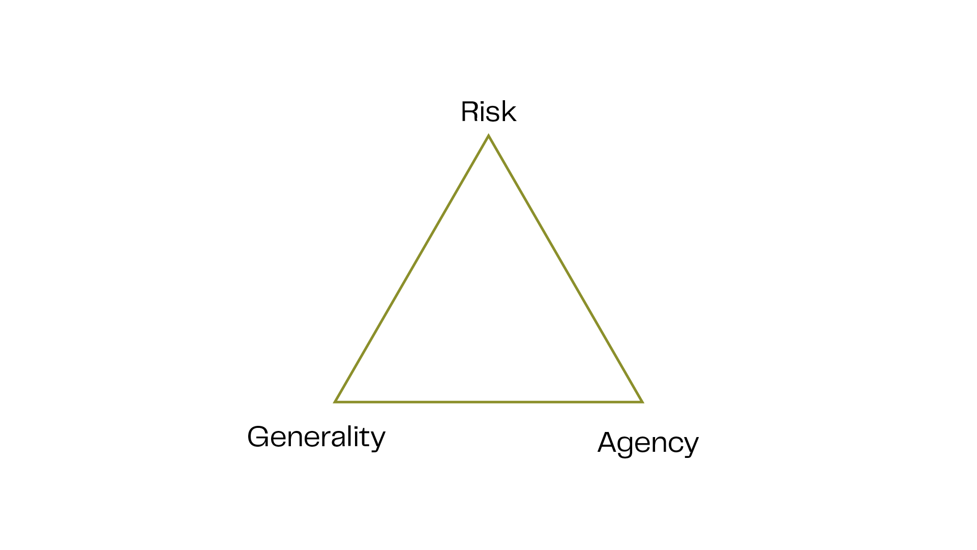 - High generality, high agency: assume elevated risk by default. Broad context combined with autonomous action creates systems that introduce a combinatorial explosion of failure modes, and unless governance is explicitly engineered, the third vertex, risk, increases exponentially.