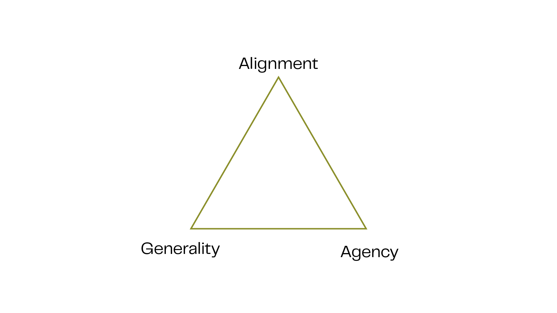 While thinking through this problem in 2023-2024, during my time at Georgetown University, I wrote a short piece outlining what I called a trilemma between Generality, Agency, and Alignment (yes, I know we hackerfolk love these triangles). I shared it with peers to see whether the idea held up on its own and later shared it anonymously on LessWrong.org. The response was encouraging, but at the time, the framing was still largely theoretical.